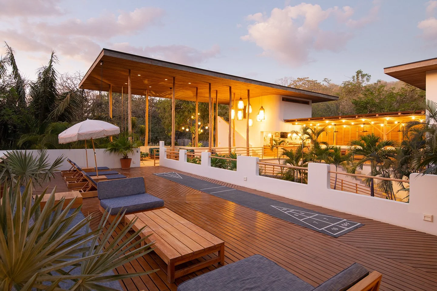 We will be staying at The Nomadic Hotel, home of the most magical yoga shala in Nosara: amazing views, open air with a thatched roof for shade, and all the yoga mats and props provided. The Nomadic is especially designed for yoga retreats, with a gorgeous pool and lounge areas, modern rooms with air conditioning, and a café offering delicious, healthy meals, snacks, juices, and smoothies.